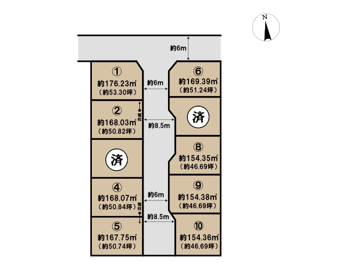 | 土地面積 | 154.31㎡~176.23㎡ |