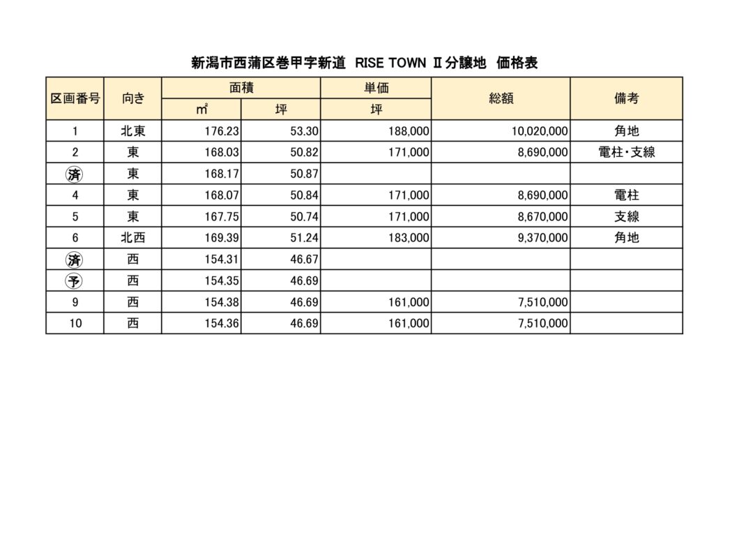 | 物件名 | RISETOWN 巻Ⅱ(全10区画) |